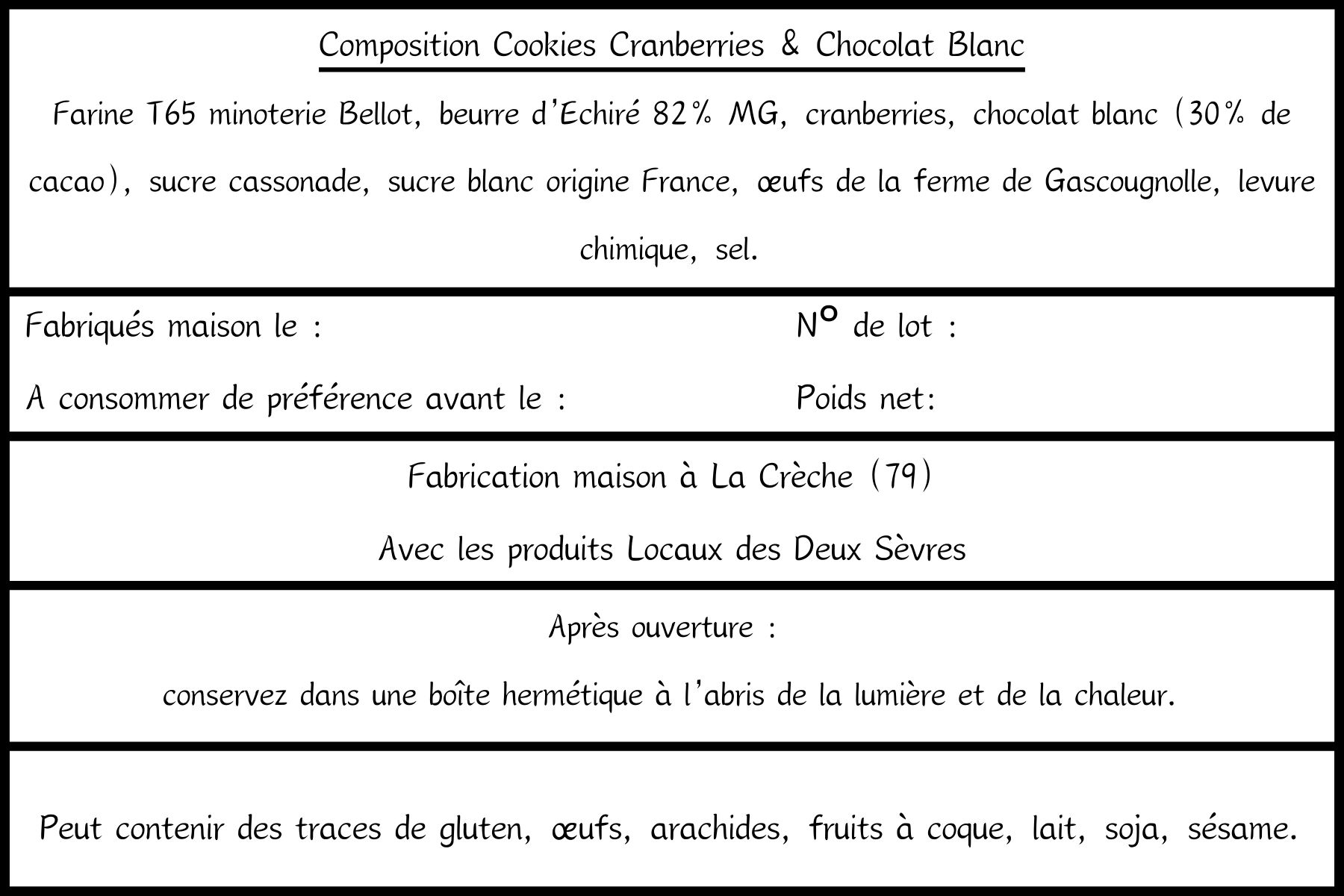 Nos cookies sont parfaits pour une pause café, un encas gourmand ou un cadeau délicieux. Laissez-vous séduire par l’alliance des cranberries, du chocolat blanc et des ingrédients locaux.