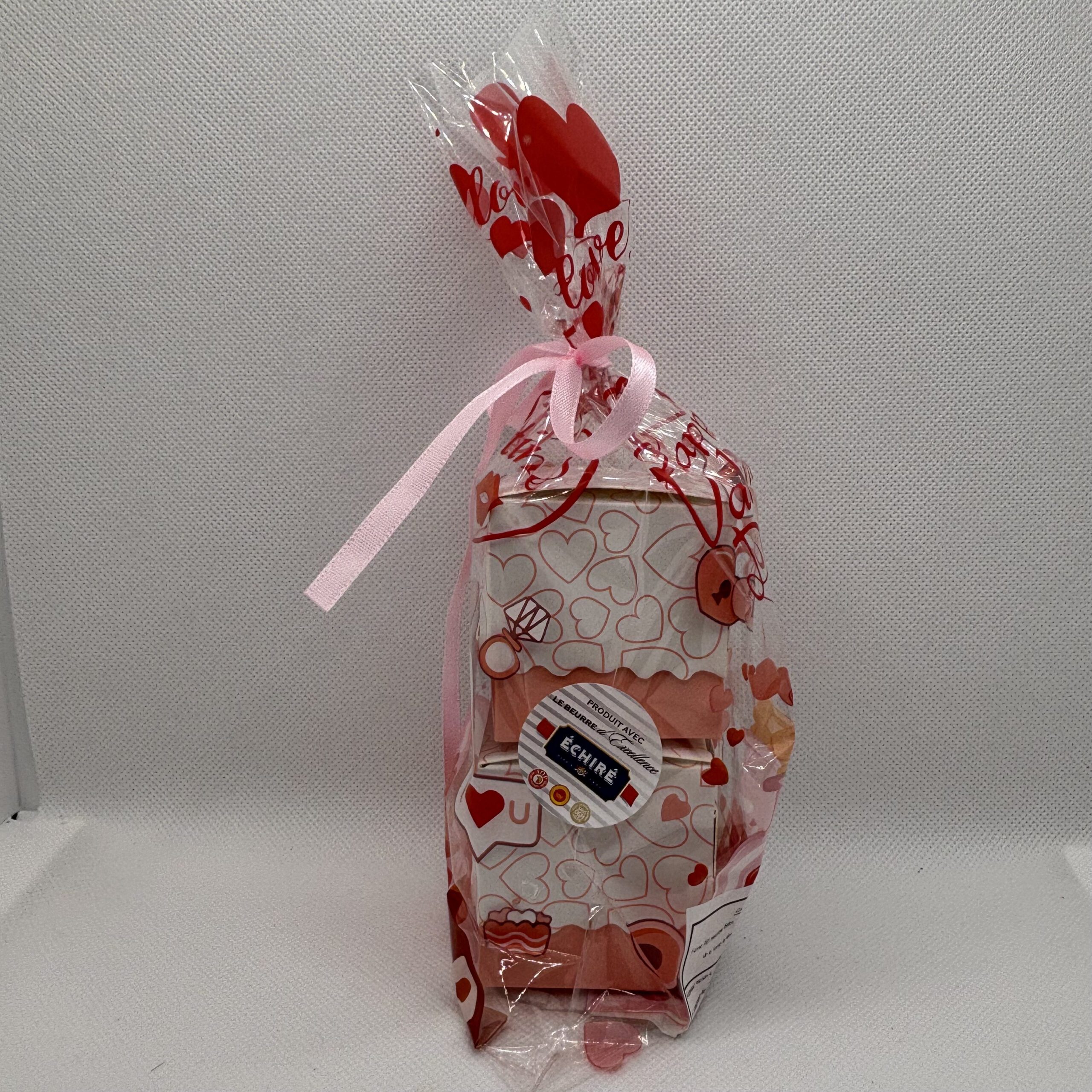 Nichées dans un emballage délicat orné de cœurs et d’un ruban de soie rose. Vous découvrirez deux jolies boîtes renfermant chacune 3 Spritz artisanaux. Ces biscuits sablés, à la texture fondante et croustillante. Il cachent un trésor : l’éclat sucré et floral des véritables bonbons de coquelicot.