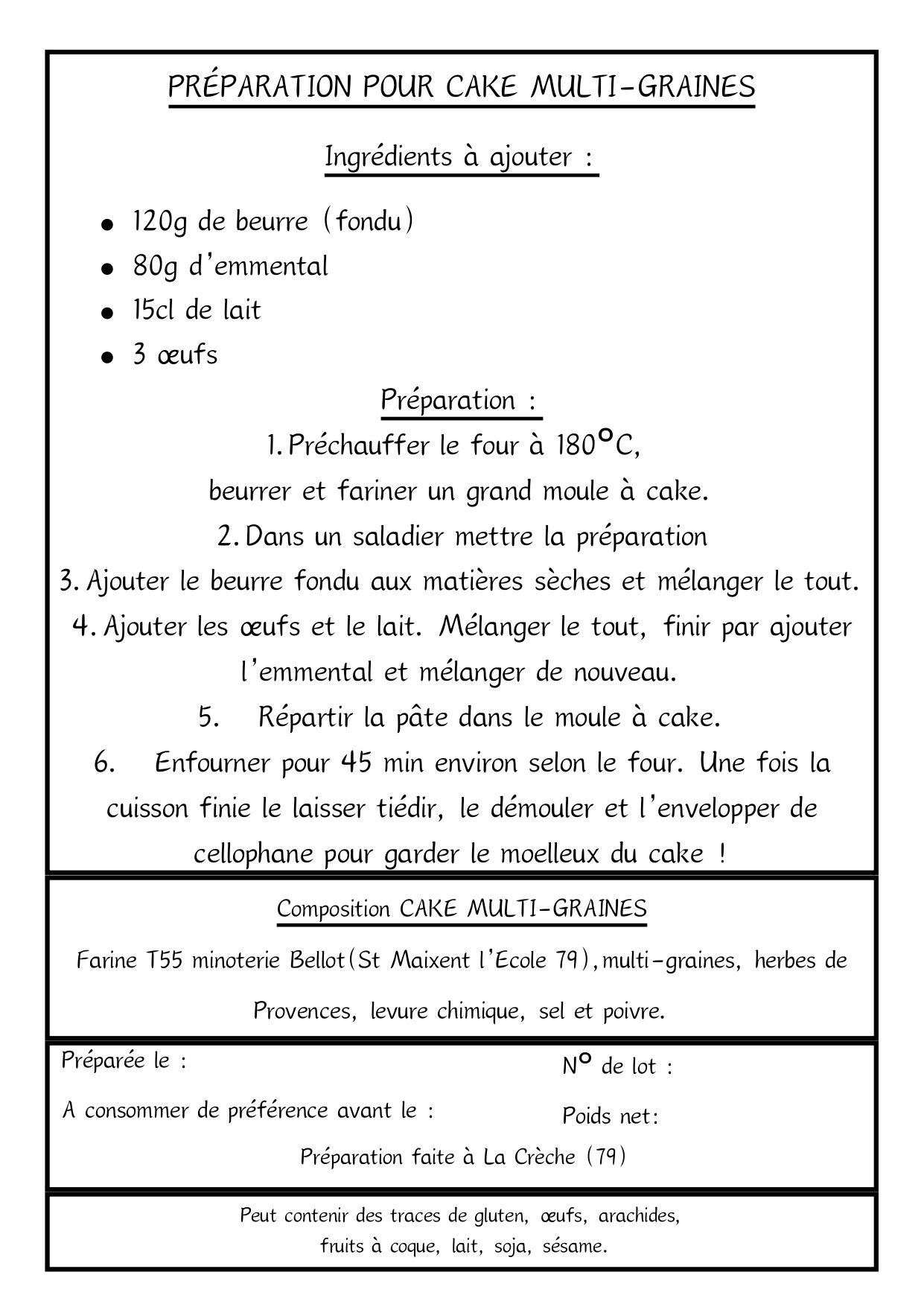 Avec notre préparation pour cake multi-graines, offrez-vous une pause gourmande et nutritive, alliant plaisir et bien-être, tout en valorisant le savoir-faire artisanal et les produits locaux des Deux-Sèvres.